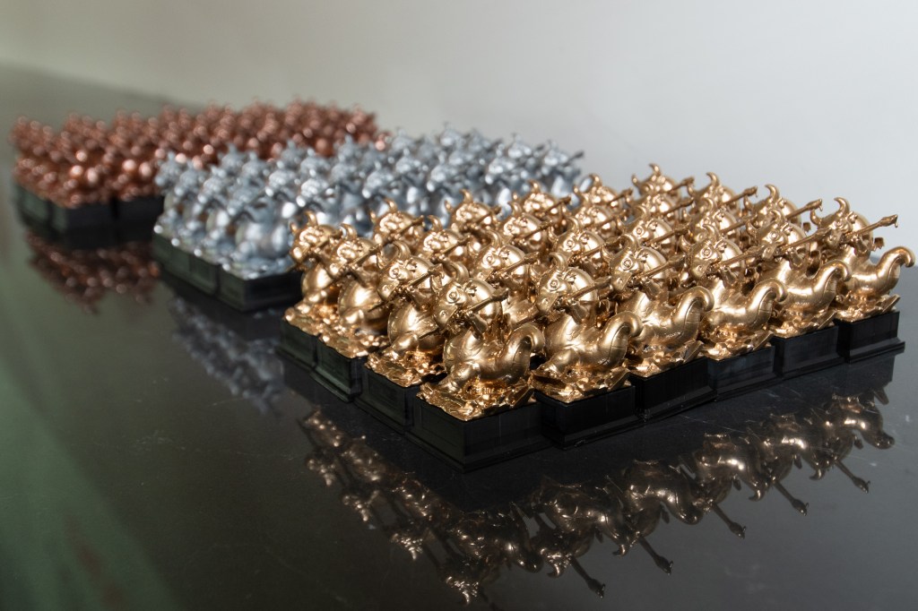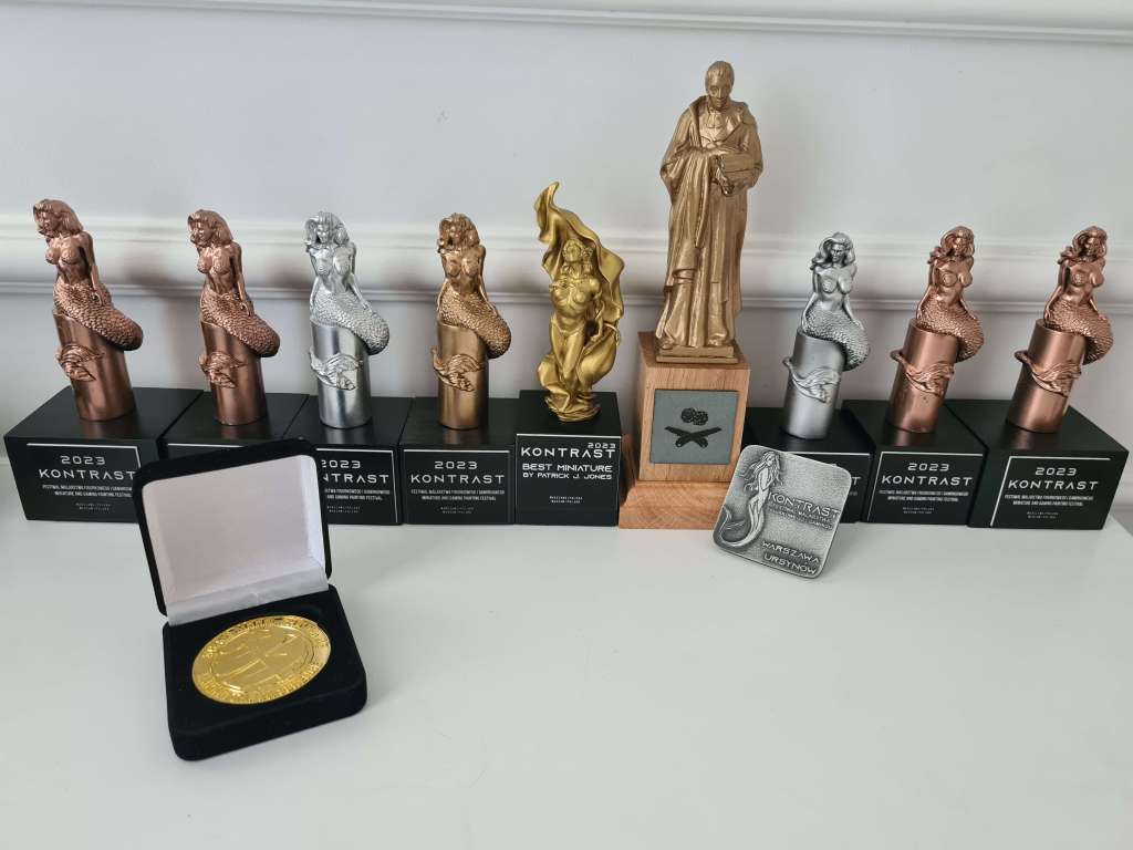 The judging followed the open system, which means that rather than a top 3 all works deserving of gold received gold, all works deserving of silver received silver, and so on. In addition highly commended entries received a cool pin, a golden one in the masters categories and a silver one in the standard categories. In the Standard & Gaming categories the awards were engraved metal plates, whereas the Masters category awards were beautiful mermaid statues, a nice local touch as the Mermaid or ‘Syrenka’ is featured in the Warsaw coat of arms and there are a lot of statues of them all over the city!